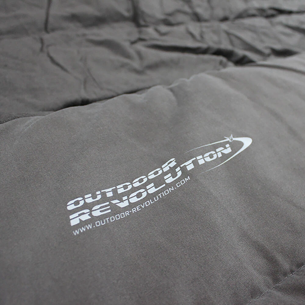 As the name suggests, this is the King of sleeping bags. The Star Fall King 400 is our warmest, biggest and most luxurious sleeping bag in the Outdoor Revolution sleeping range. The outer fabric has the most gorgeous moleskin feel to it, and the lining is 100% cotton flannel for a super soft and warm rich feel. We have included the 2 full-size cotton flannel pillowcase that neatly toggles into the cowl hood, so they do not go missing when being packed away. This bag has been designed specifically for camping across all 3 seasons and is a proper grownups bag! The 3-way nylon zippers allow extra air and ventilation especially the base zip allows more air around the foot of the bag. There is a zip on both sides to allow the user ease of access in and out of the bag, plus they can control their own temperature better thanks to the double sliders on each side. Not wanting to prize yourself of this sleeping bag in the morning is its only drawback! Pack Size 68 x 58 x 24cm • Filling: 2x200g/m2 double layer 30% single hole siliconized hollow fibre / 70% polyester fill